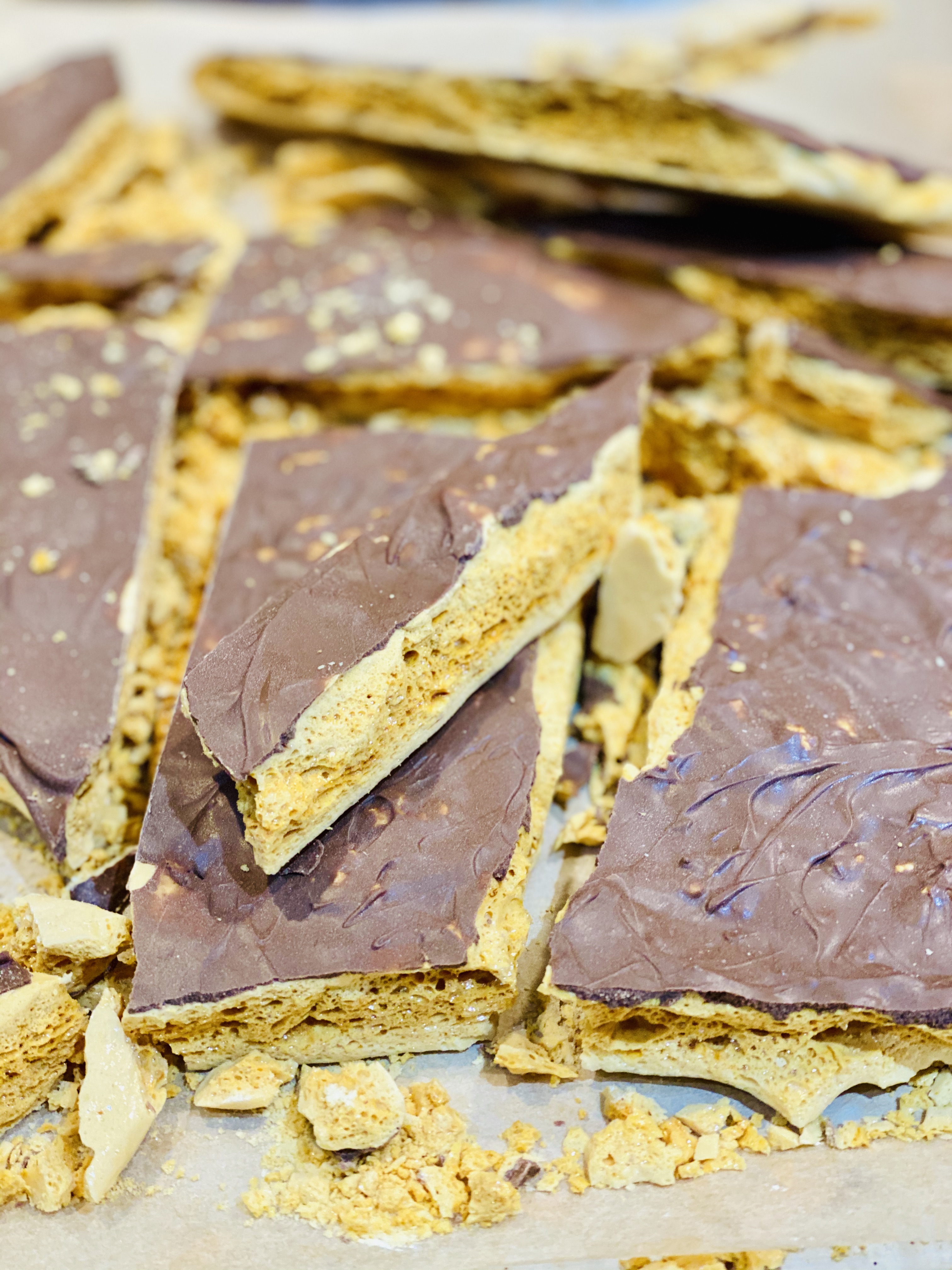 - Christopher’s honeycomb (p. 411): the recipe gives visual cues, but to be sure, check with an instant read thermometer and cook the sugar syrup to 300° F.