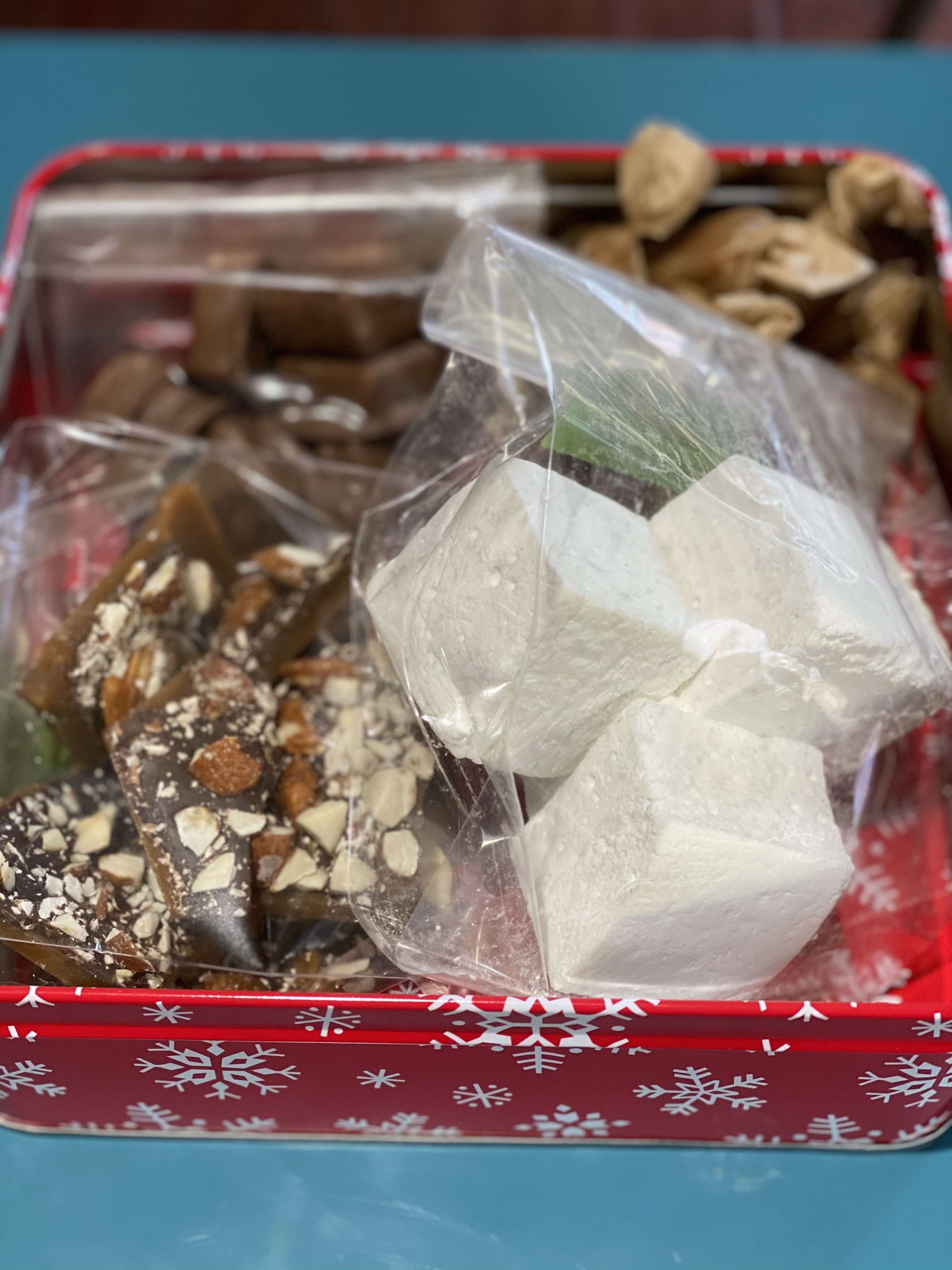 I made: Whole wheat maple blueberry scones (p. 69), Brown butter cinnamon rolls with cream cheese frosting (p. 97), Vinal Bakery Multigrain English muffins (p. 143), Pecan sandies (p. 160), Lemon polenta cookies (p. 165), Jessi’s caramel popcorn cookies (p. 191), Plum (but with pear) frangipane tart (p. 230), Almond joy tart (p. 233), Almond panna cotta (p. 355), Vanilla mint marshmallows (p. 408), Christopher’s honeycomb (p. 411), Butterscotch caramels (p. 413), English toffee (p. 419).